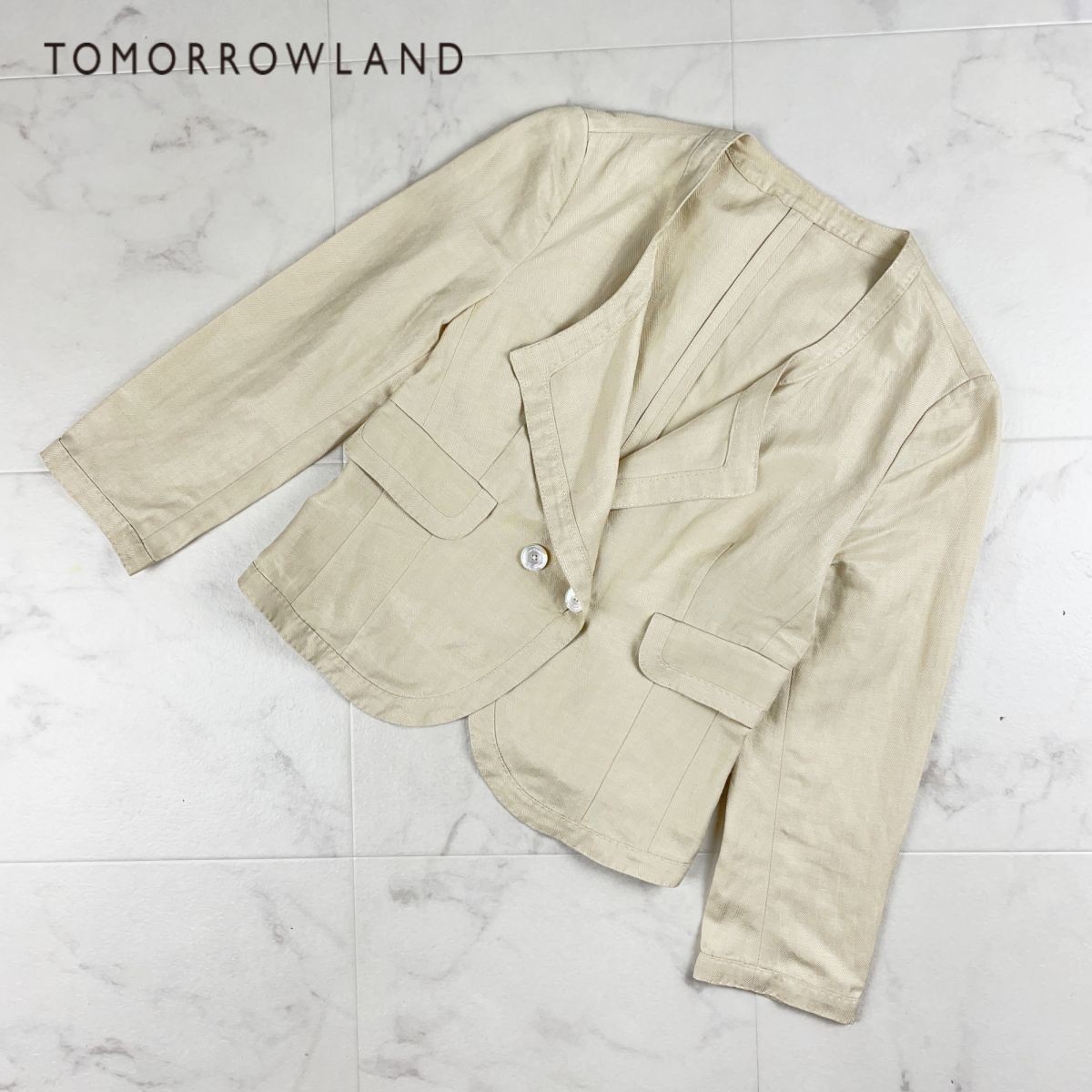 - 美品 TOMORROWLAND トゥモローランド ヘリンボーンボレロ風ジャケット シルク混 リネン混 背抜き レディース ベージュ サイズ38*JC756