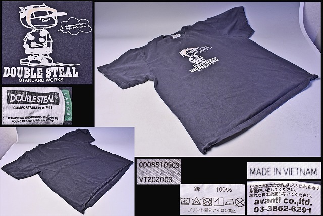 > DOUBLE STEAL ★ ダブルスチール ★ Tシャツ ★ Lサイズ ★ カラー デニム ★ チャコールグレー ★ 綿100% ★ 中古品 ★
