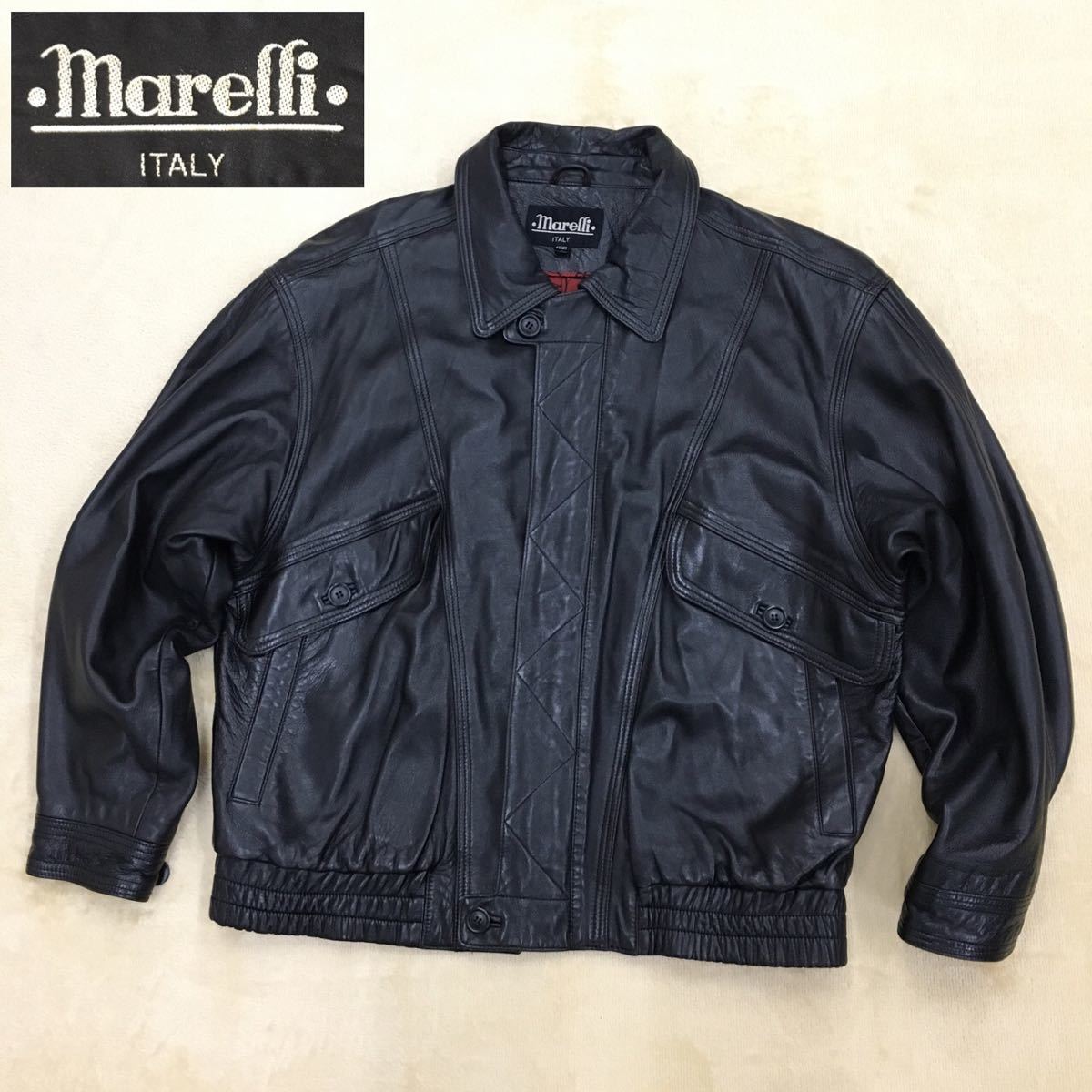 - mareffi ITALY ラムレザージャケット 羊革ジャン 裏地キュプラ メンズ サイズM ブラック