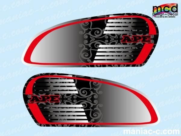 - エイプ50/100 タンク デカール ステッカー MCDタイプDIIA 赤色