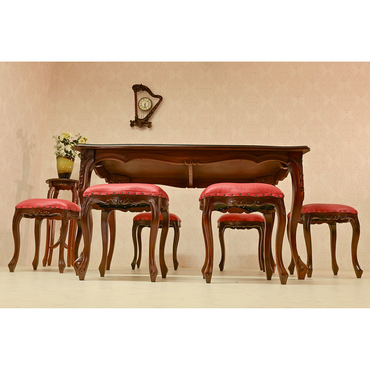 - marrone スクエア ダイニングテーブル+スツール6脚セット 食卓机+スツール6脚セット 135cm花柄 マホガニー材使用