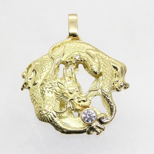 - ◎中古美品◎18金 ダイヤ 計0.36ct 龍彫 ペンダント