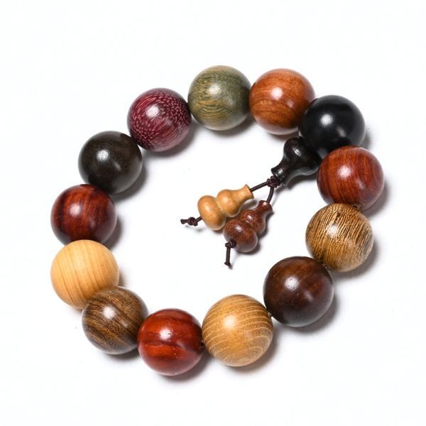 - [EasternStar] 海外発送 マルチカラー ミックス ブレスレット お守り 数珠 念珠 木珠 18mm 13玉 小孔