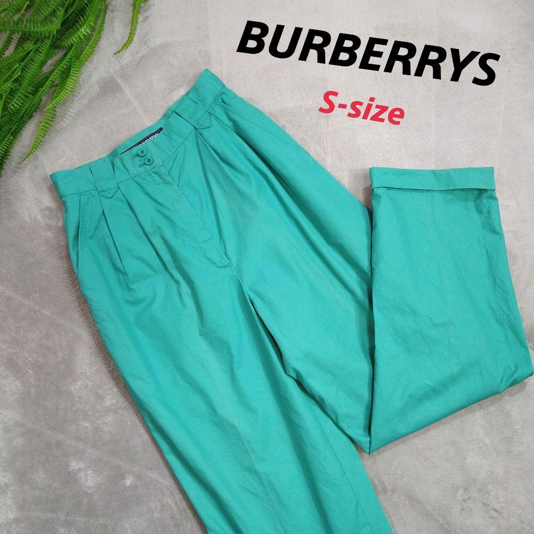 - BURBERRYS ハイウエスト&ツータック コットン素材パンツ・トラウザー 緑グリーン Sサイズ レトロ古着78715