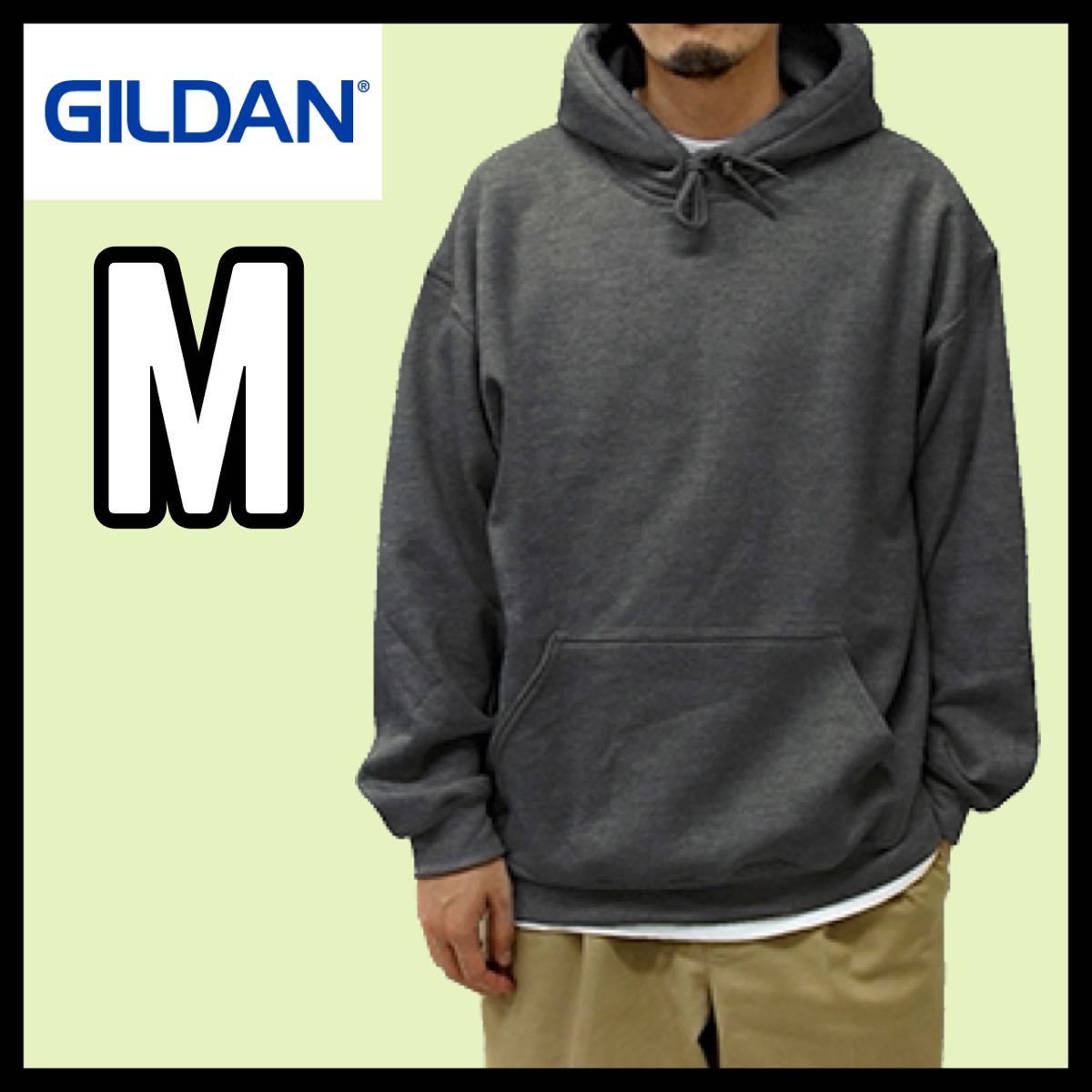 - 新品未使用 GILDAN ギルダン 8oz プルオーバーパーカー 無地かぶりパーカー 裏起毛 ダークヘザー Mサイズ ビッグシルエット フーディー