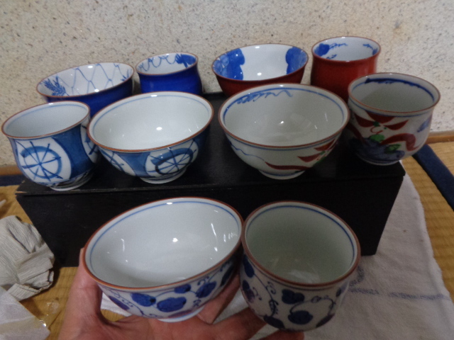 - 有田焼-有田の器-/彩窯 古代絵変り 新食器揃/飯椀&湯呑 各5客セット/絵柄・色彩 5種個別/木箱入未使用美品-長期保管品