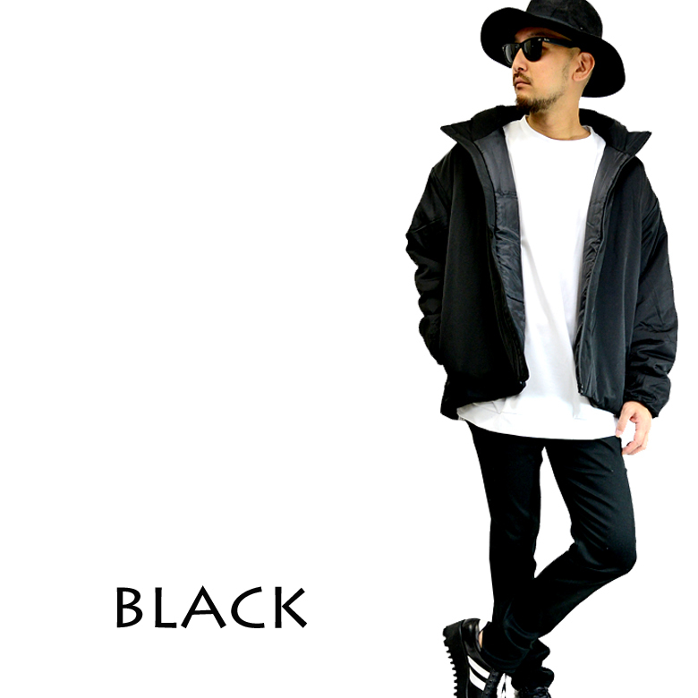 > ビックシルエット ボリュームスタンドネック 中綿ジャケット メンズ ダウン風 23463 新品ブラック LL