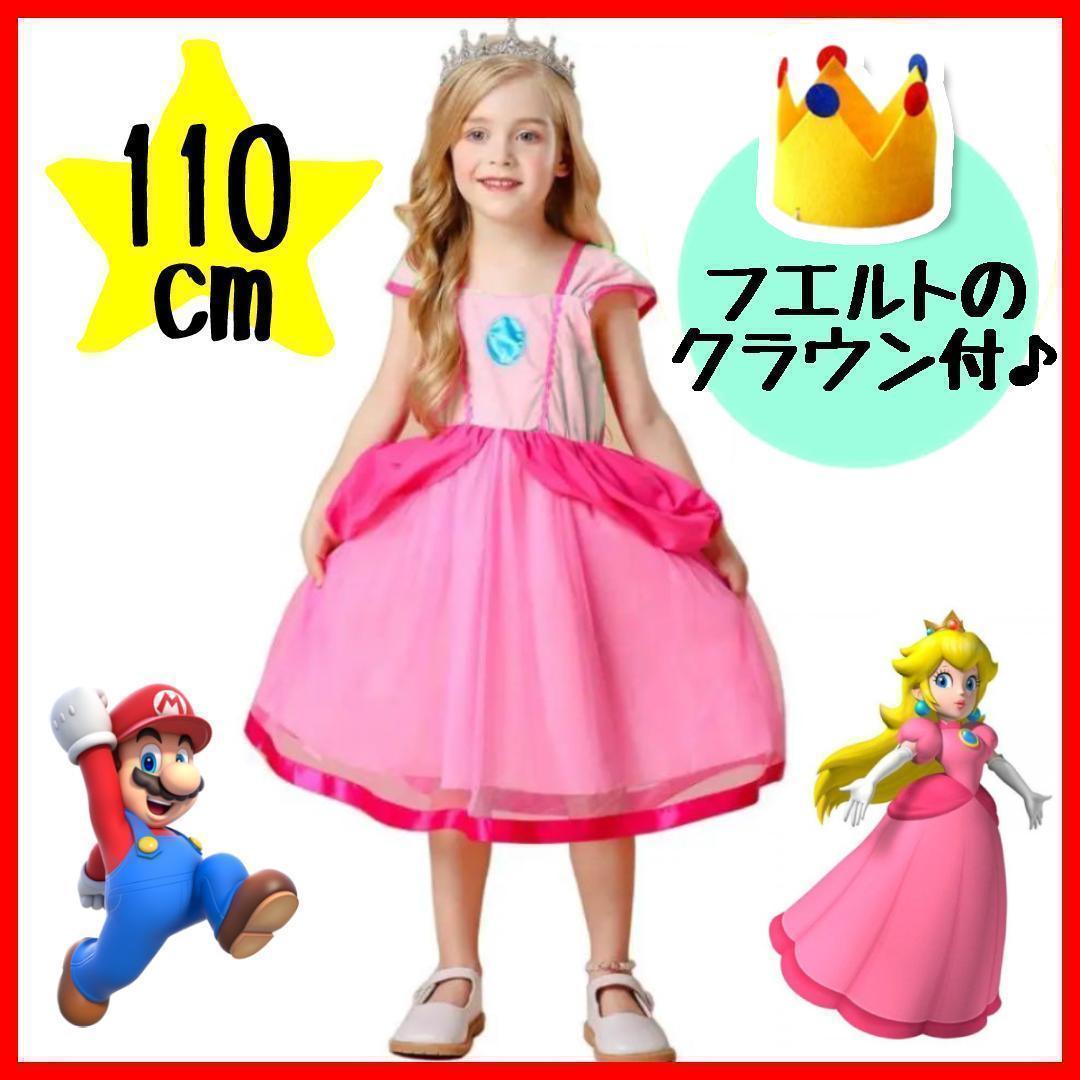 > 2点セット ピーチ姫 110cm コスプレ 子供 なりきり ドレス ハロウィン