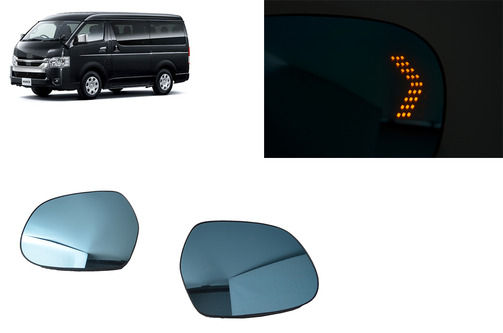 > ハイエース 200系 (S-GL用)3型4型5型 純正ミラー交換 LEDシーケンシャルウインカー ドア外装ブルーレンズ(ミラーヒーター内蔵)パーツ