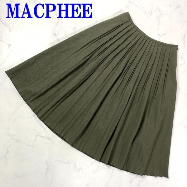 > MACPHEE マカフィーウールプリーツフレアスカートカーキサイドプリーツ無 チェック ウール100% 裾メロー 38 C8143