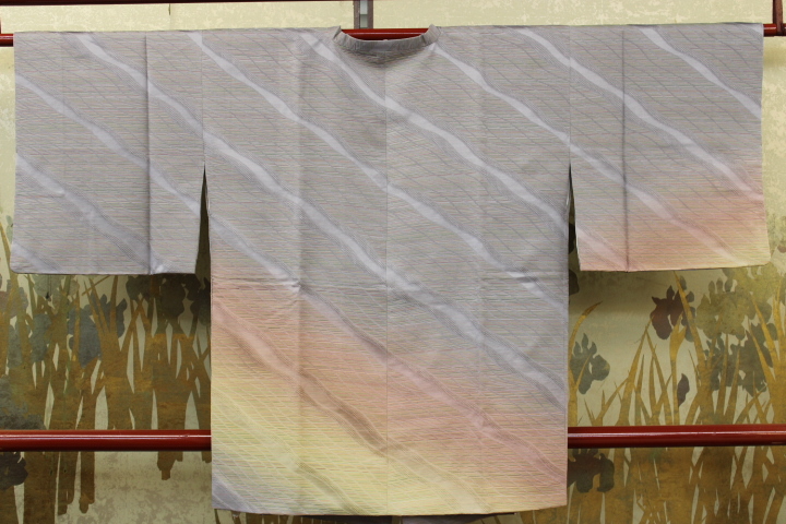 - きもの今昔6126 道行コートコレクション 特撰品シリーズ 正絹紋意匠虹ボカシ絵羽染付 前身にシミ 身丈83㎝