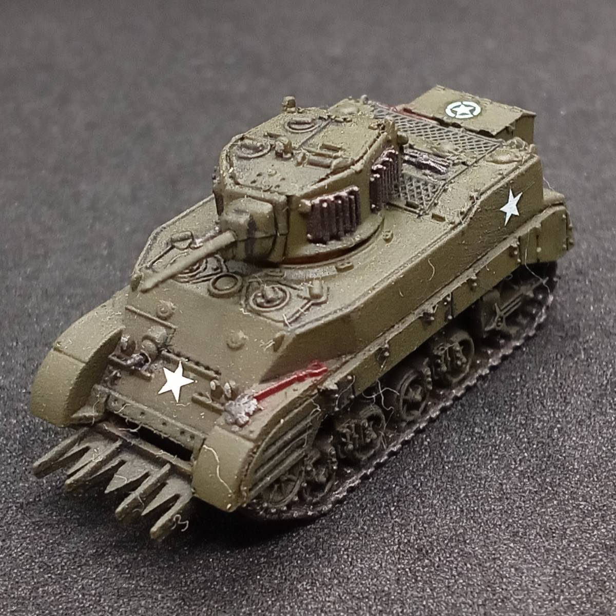 > ●完成品1/144 M5スチュアート軽戦車,ヘッジロウカッター装着ver.”スチュアート改良版!”,アメリカ,WW2,自作ver