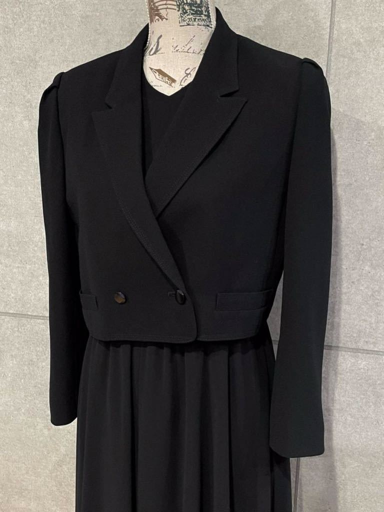 > 上質高級! LUNESOIR ルネソワール ジャケット 半袖ワンピース ブラックフォーマル 冠婚葬祭 黒 ブラック 11サイズ 東京ソワール ○ 新規×