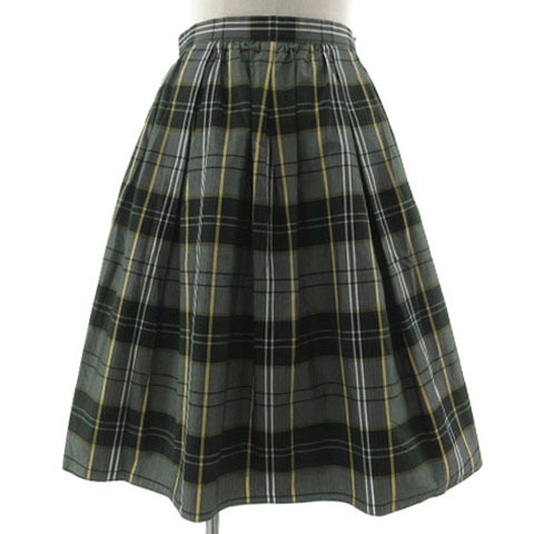 - イネド INED スカート ギャザー フレア ミディ丈 コットン 日本製 チェック グリーン 緑 ネイビー 紺 ホワイト 白 イエロー 黄色 11