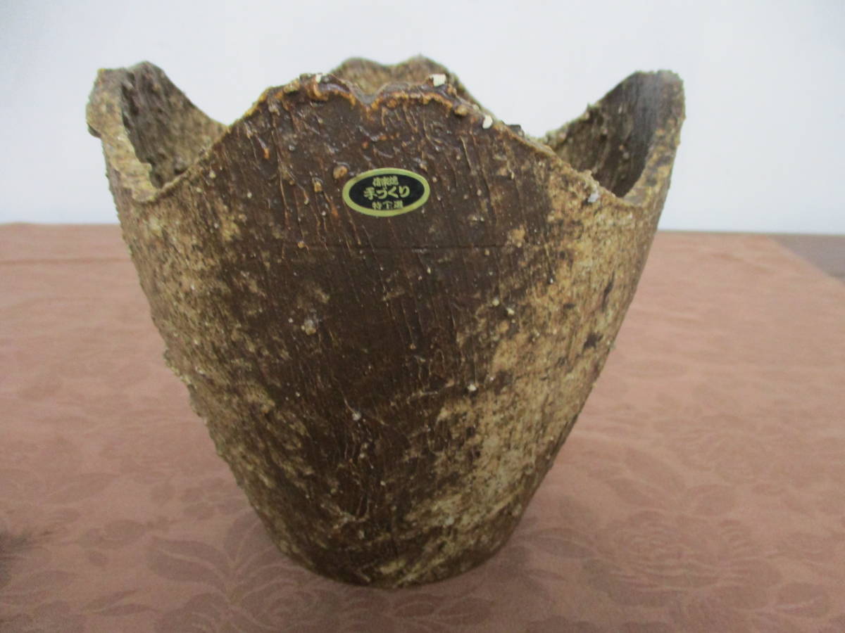 - ★信楽焼 手づくり 花器 山重? 高さ16㎝ 横17㎝ ※所々に欠けあり tm2312-3-4★