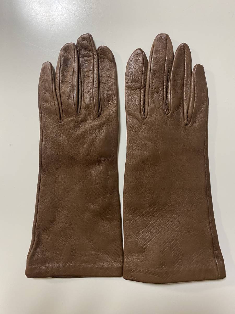 - 【美品】ロエベ LOEWE レディース レザーグローブ ブラウン 茶色 革手袋 シルク裏地 サイズ6ハーフ