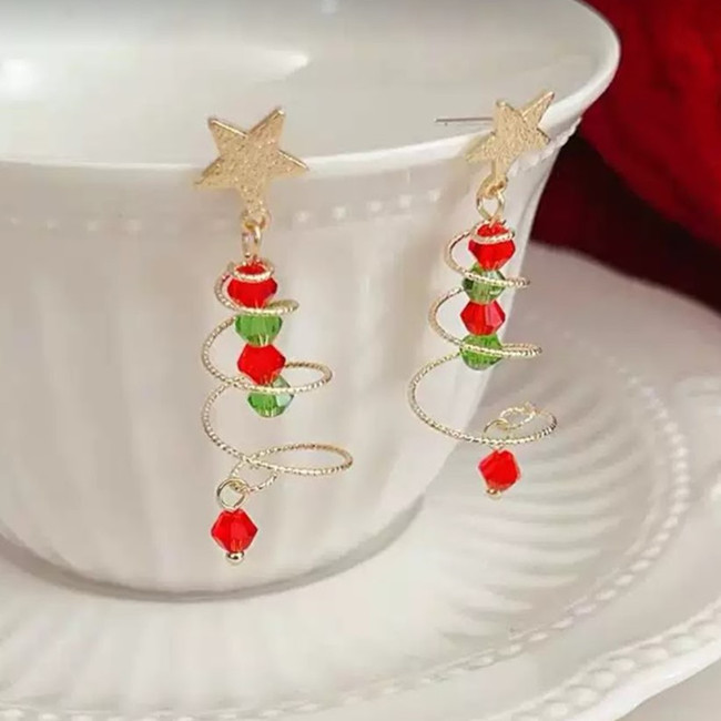 - クリスマス ツリー カラービジュー シルバー925ポスト ピアス