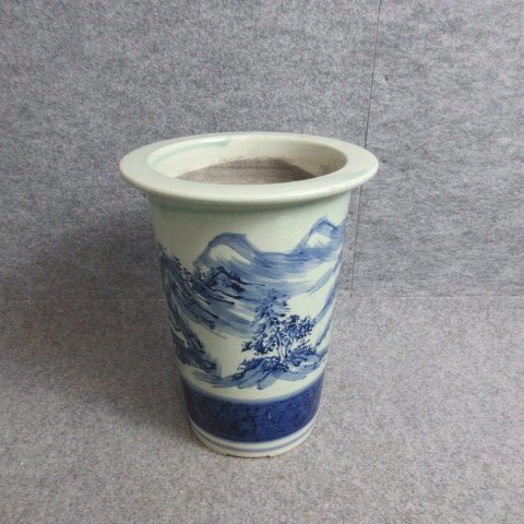 - 染付 植木鉢 [B33174] 高さ26cm 直径20cm 盆栽 園芸 古玩 古美術