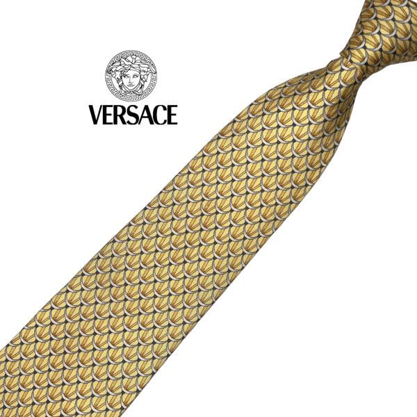 - VERSACE ネクタイ パターン柄 ゴールド系 切り替えし メデューサ ヴェルサーチェ メンズ服飾小物 ネコポス可 USED 中古 t499