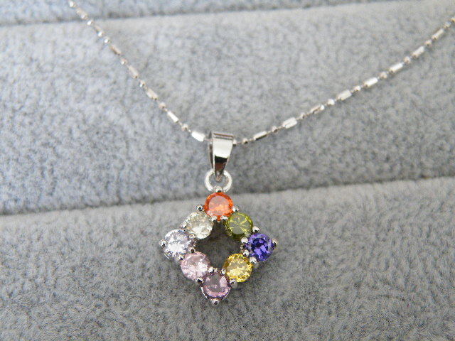 - 95065.カラーストン ビーズ ガラス 18KGP ネックレス 未使用