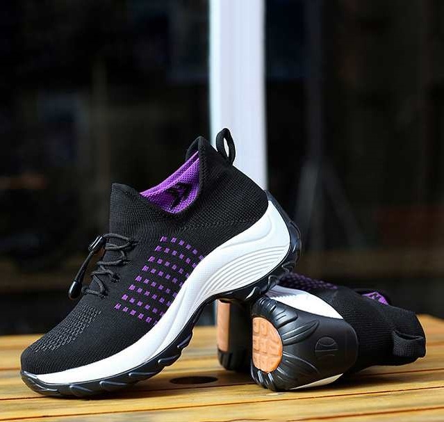 - スニーカー レディース クッションシューズ 厚底スニーカー ダイエットシューズ 身長アップ 靴 ブラック 25cm