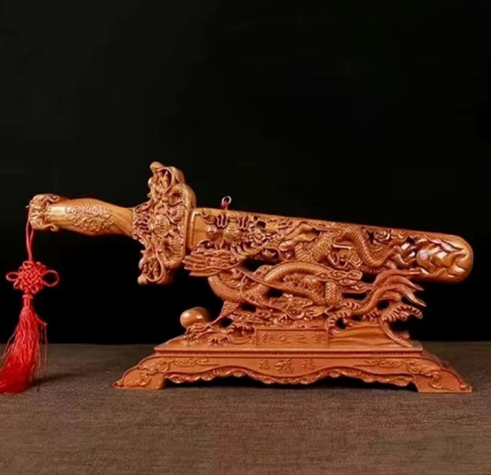 - 美品★ 鎮宅魔除けの木彫り祥龍桃木剣