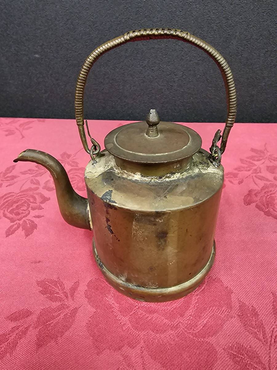 - レトロ アンティーク 古い薬缶 銅製? 真鍮製? やかん 銅やかん 真鍮やかん 茶道具 サイズ底直径約7.5cm高さ10cm ekt2-60