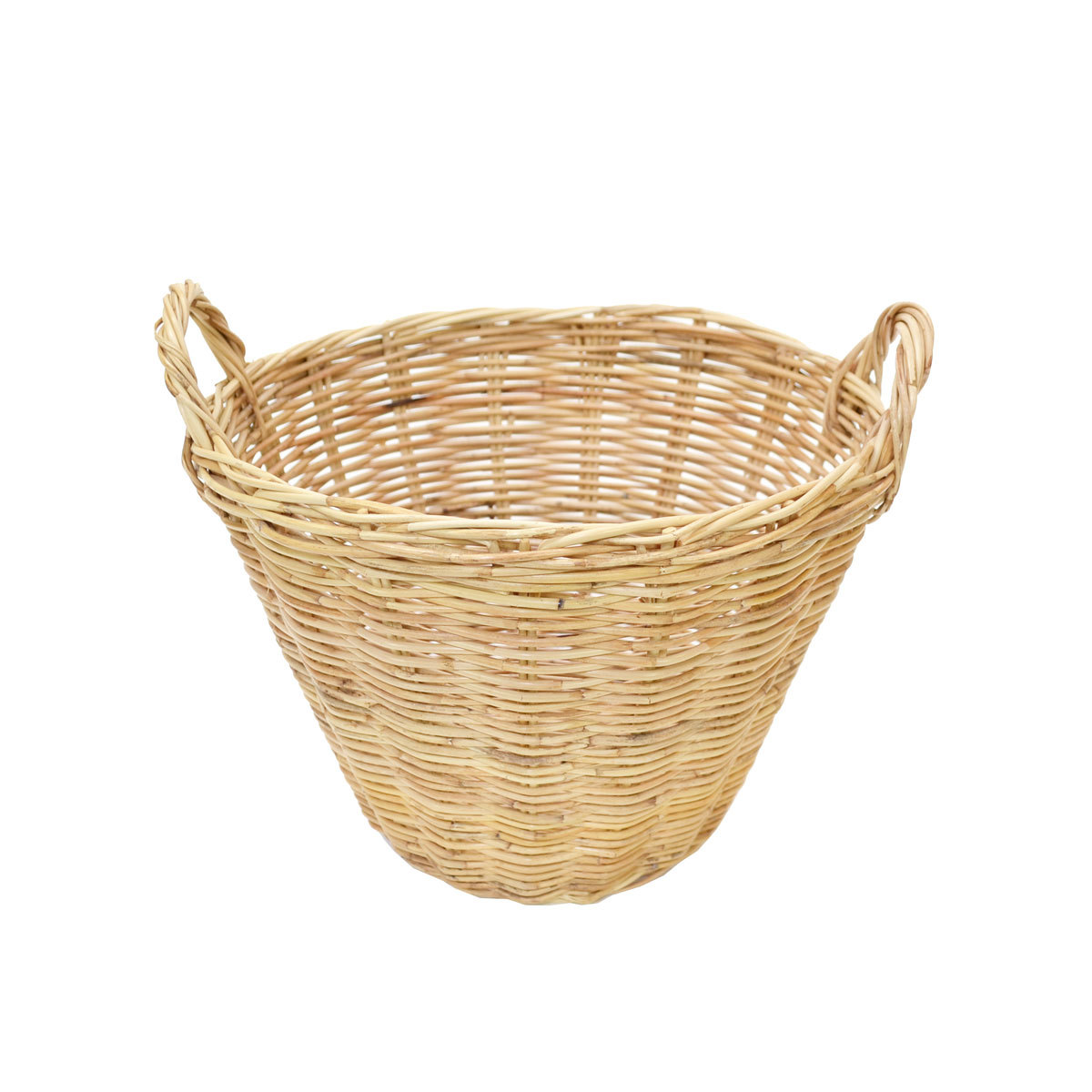 - タイ製ラタン 取手付き ラウンドバスケット M 籐 丸籠