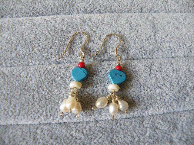 - 95108.淡水パール カラーストン 水晶 ピアス 在庫処分