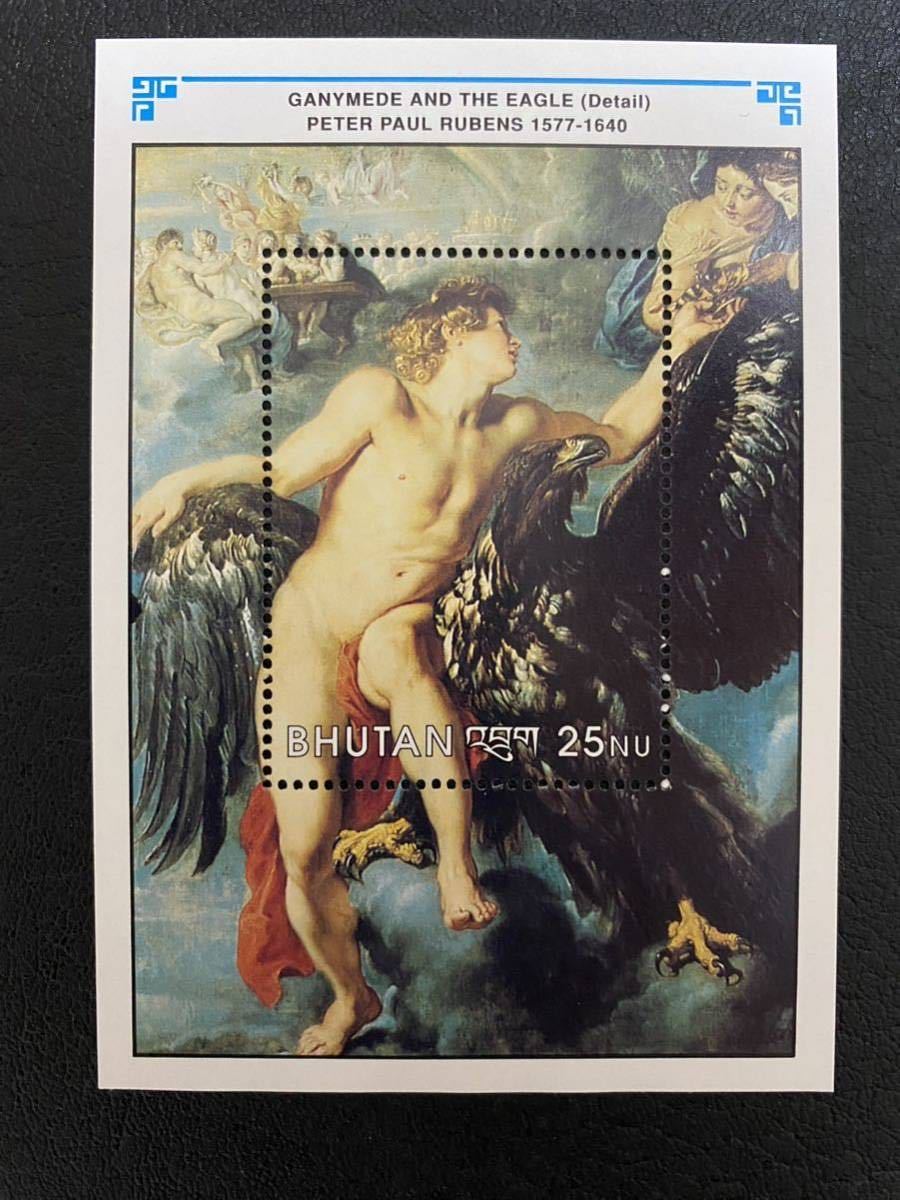 - ブータン ルーベンス 鷲 絵画 美術 小型シート1種 未使用 NH