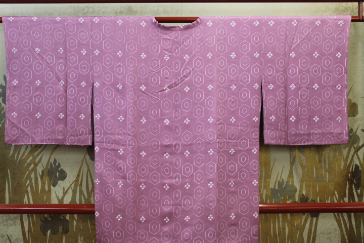 - きもの今昔6276 道行コートコレクション 正絹綸子地 藤色地亀甲柄と絞り入り 共布ショール付き 身丈87cm