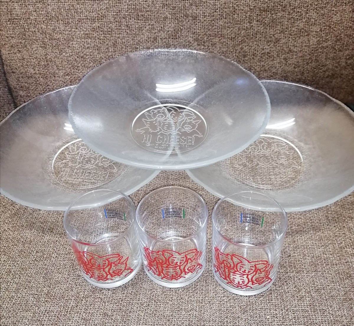 > K47【未使用!長期保管】 昭和レトロ ミスタードーナツ ノベルティ AYUMI OHASHI ガラスプレート ミニグラス 各3セット