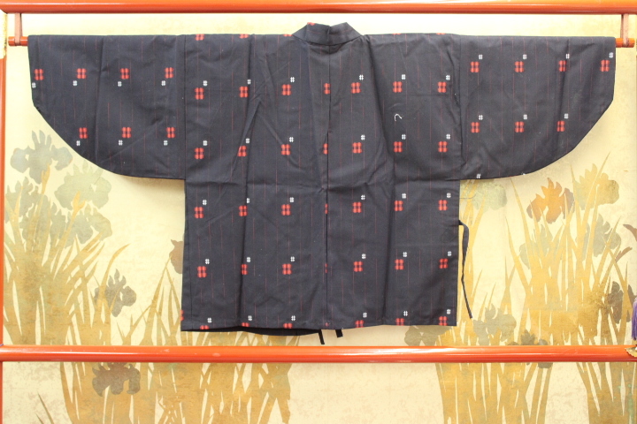 - きもの今昔6290 おしゃれコート ウール久留米織絣 赤白井絣 引っ張りコート仕立て