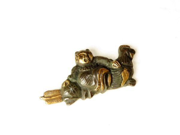 - 【6485】提げ物 (江戸~明治 オリジナル) 赤銅 唐子 彫金 金具(初品・買取品)
