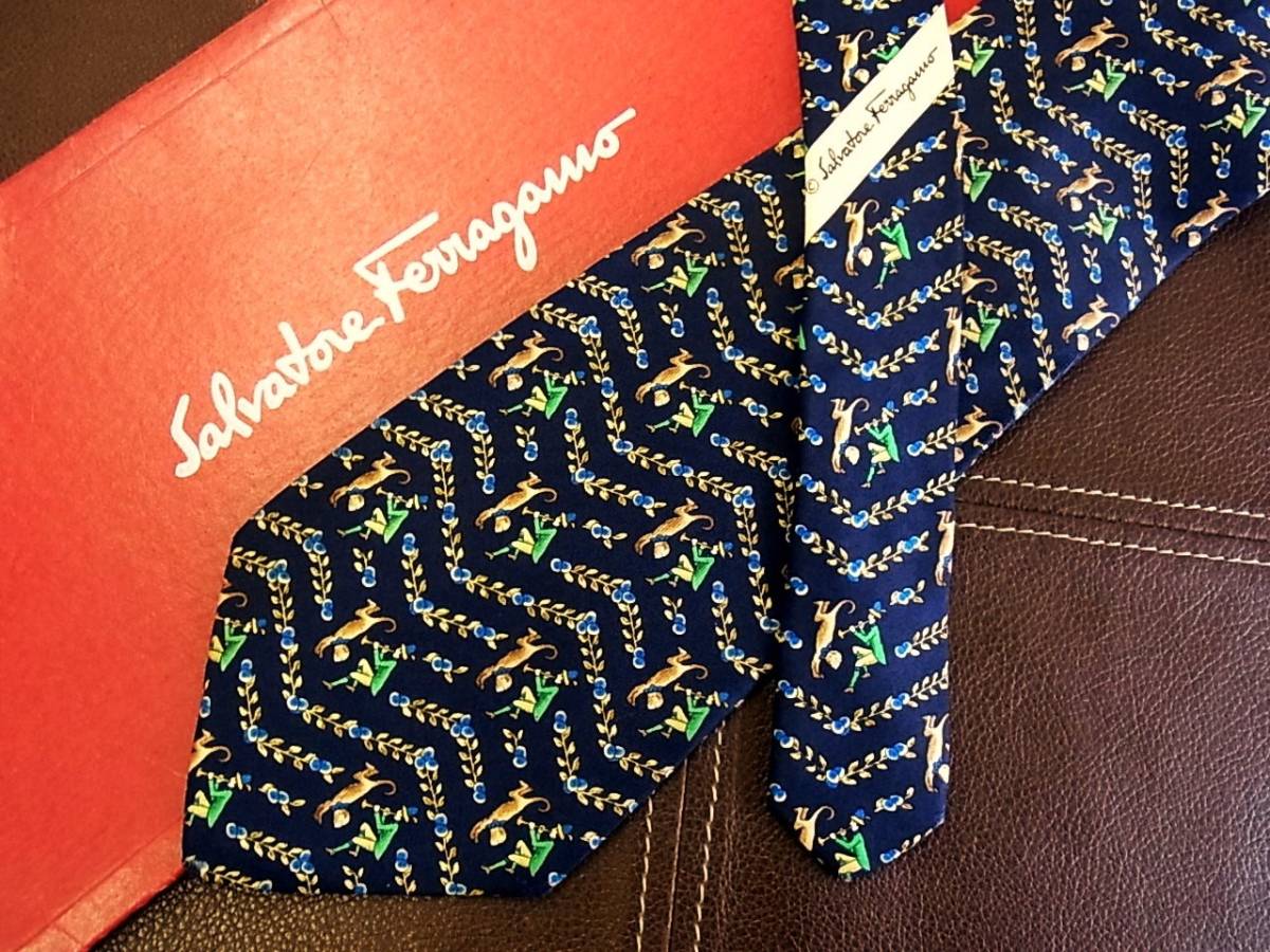 - 【在庫処分セール】5-7970z◆フェラガモ【犬】ネクタイ◆