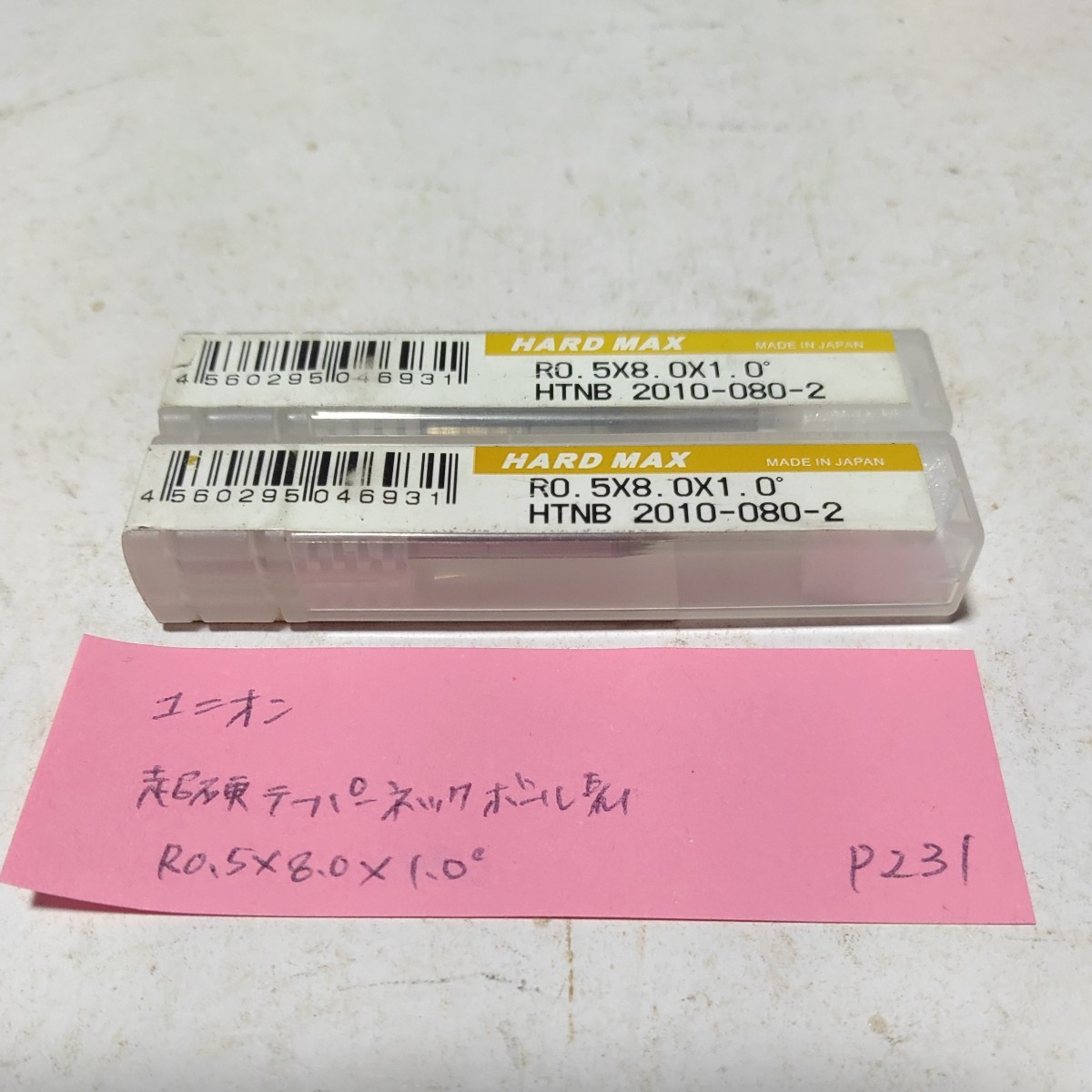 - P231 未使用 ユニオンツール 超硬エンドミル 0.5R 超硬テーパーネックボールエンドミル R0.5×80×1.0° 2本セット