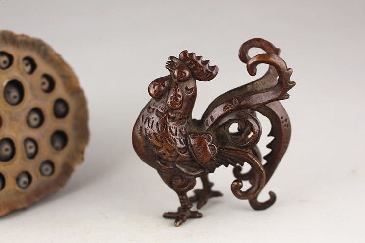 - 極美古銅煎茶道具 質感 細工実感銅雄どり置物 雄鶏一叫天下白=夜明け=光明、勝利=縁起物