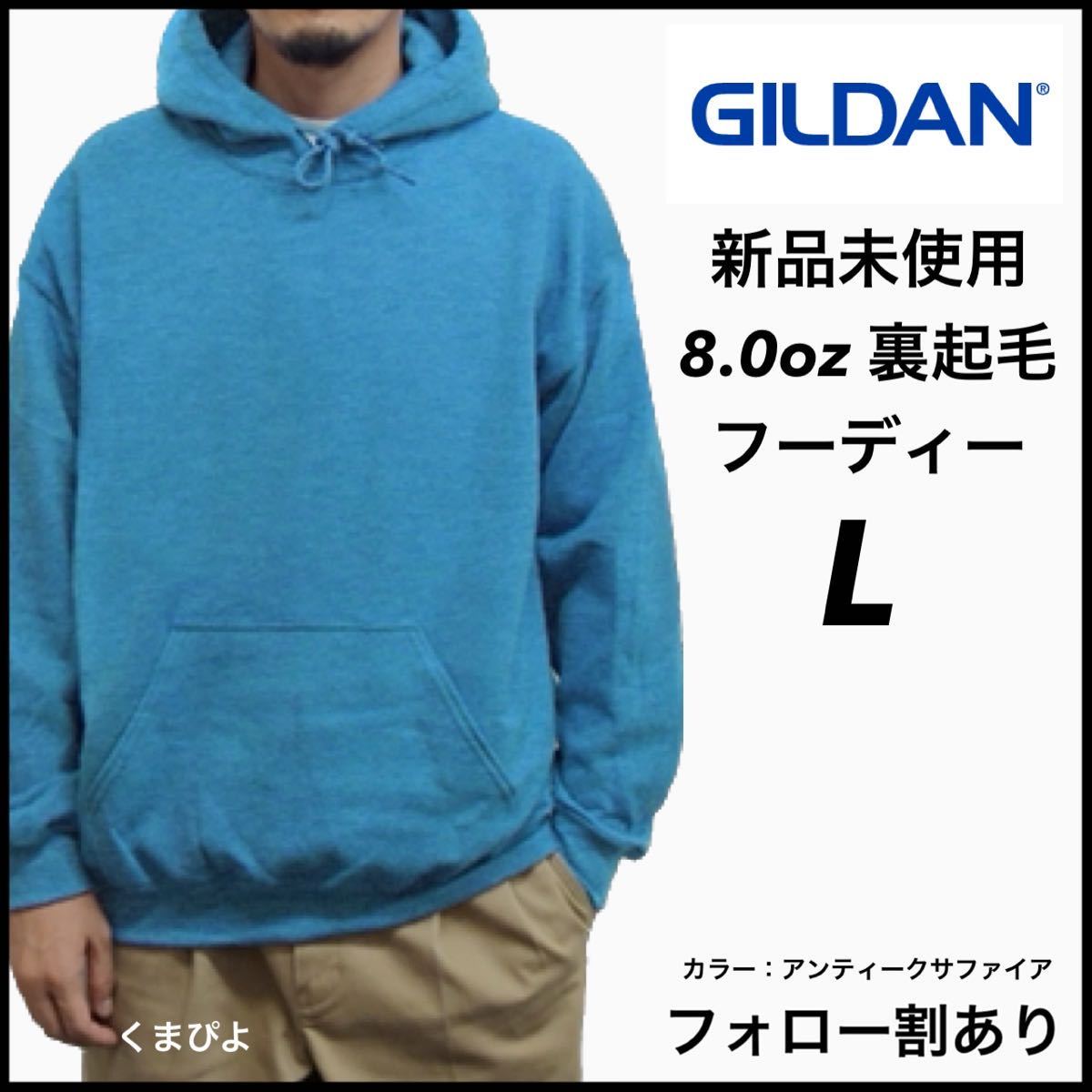 - 新品未使用 ギルダン 8oz プルオーバーフーディー 裏起毛 パーカー GILDAN アンティークサファイア L