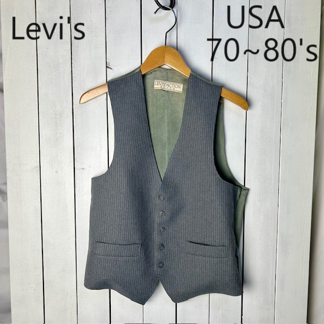 > USA古着 70s~80s Levis ACTION SUITS ピンストベスト ジレ S~M グレー オールド リーバイス ヴィンテージ アメリカ古着 ●77