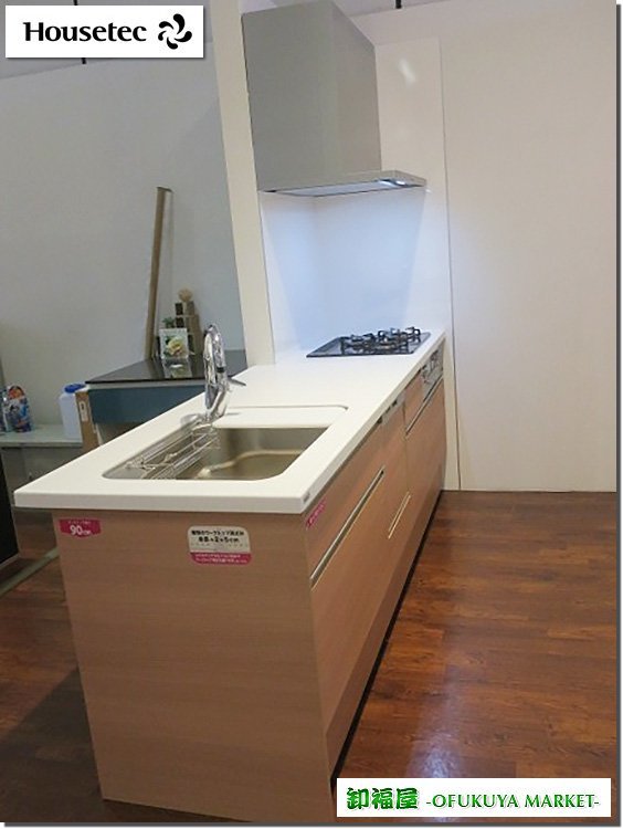 > 911509■ハウステック ワイドカウンターキッチン W2600 レンジフード コンロ(LPG) 人工大理石天板 SK8■展示品/取外し品/未使用品/大川出荷