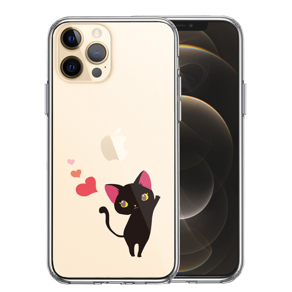 - iPhone12Pro ケース クリア ジャケット ねこ ハート スマホケース 側面ソフト 背面ハード ハイブリッド