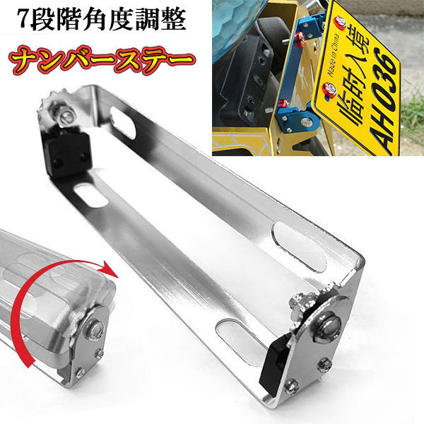 > ナンバープレート ステー フレーム 角度調節 調整 180度 7段階 原付 中型 大型 バイク シルバー 送料無料
