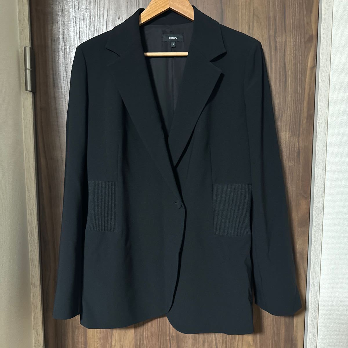 > 未使用品 セオリー theory 22AW Admiral Crepe 2 DB Rib Blazer ダブルブレストジャケット テーラード 1B 総裏地 10 黒 ブラック
