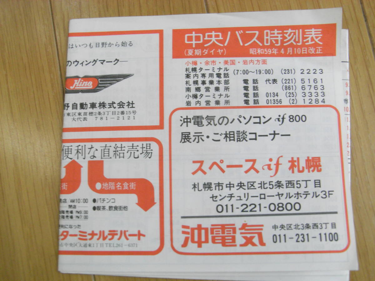 - 中央バス時刻表(夏季ダイヤ) 昭和59年4月10日改正 小樽・余市・美国・岩内方面