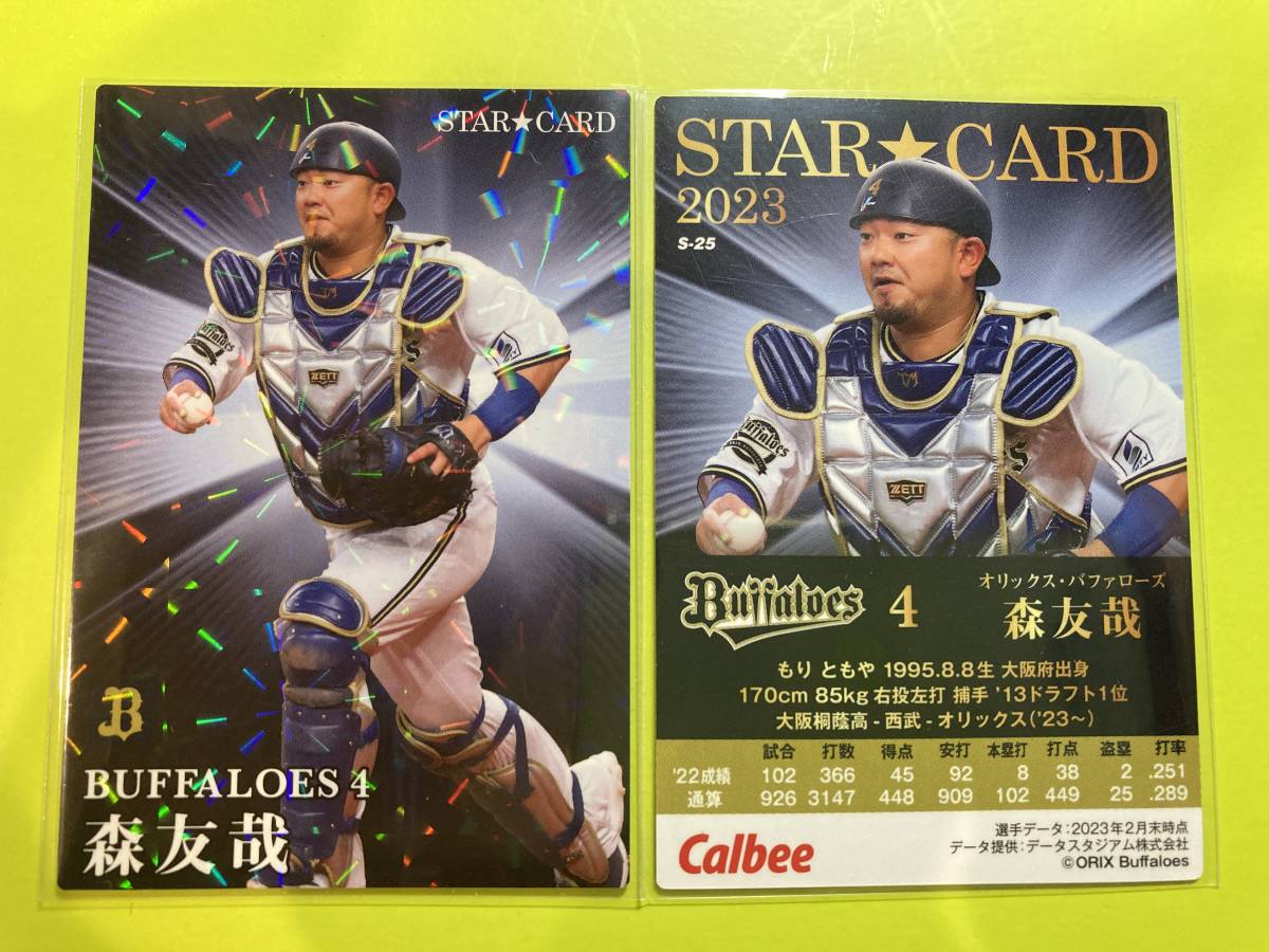> 2023 第2弾 S-25 森 友哉(オリックス)スターカード カルビープロ野球チップス 希少 FA移籍 元西武 侍ジャパン 日本代表 即決 送料85円~