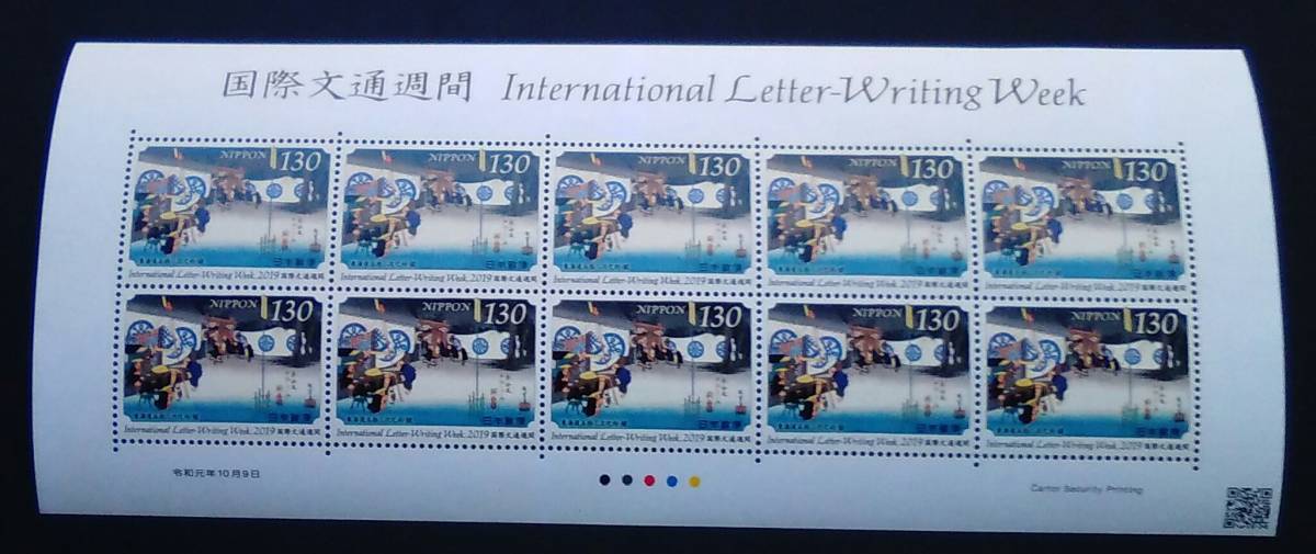 - 2019年・特殊切手-国際文通週間(130円)シート