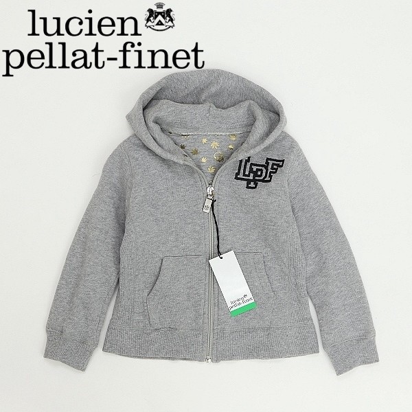 > ◆lucien pellat-finet ルシアン ペラフィネ 裏地スカル&ヘンプ柄 ロゴ バック刺繍 スウェット ジップ パーカー グレー 2 キッズ