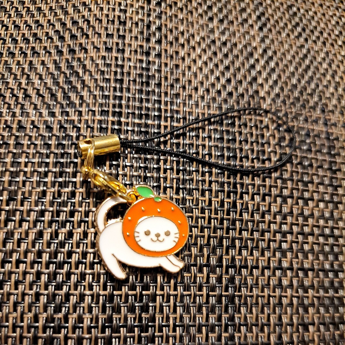 - 【新品未使用】 黒猫 みかん メタルプレート ストラップ / くろねこ 猫 帽子 チャーム