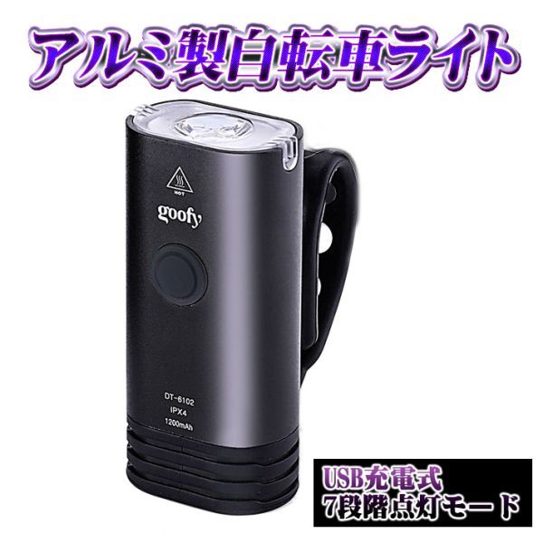 - 自転車ライトアルミ製 自転車前照灯USB7段階点灯モードUSB充電式350ルーメン大容量バッテリ360回転 IPX4防水 防災 超小型