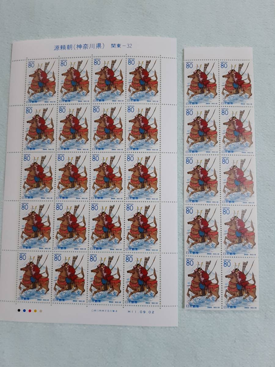ふるさと切手 源頼朝(神奈川県)関東-32 H11 切手シート1枚と10枚シート